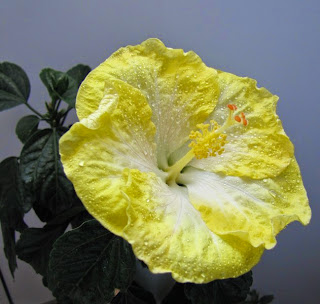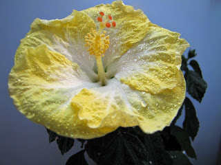 În cea mai lungă zi din an, unul din hibiscuşii mei a făcut prima floare. E adorabil!